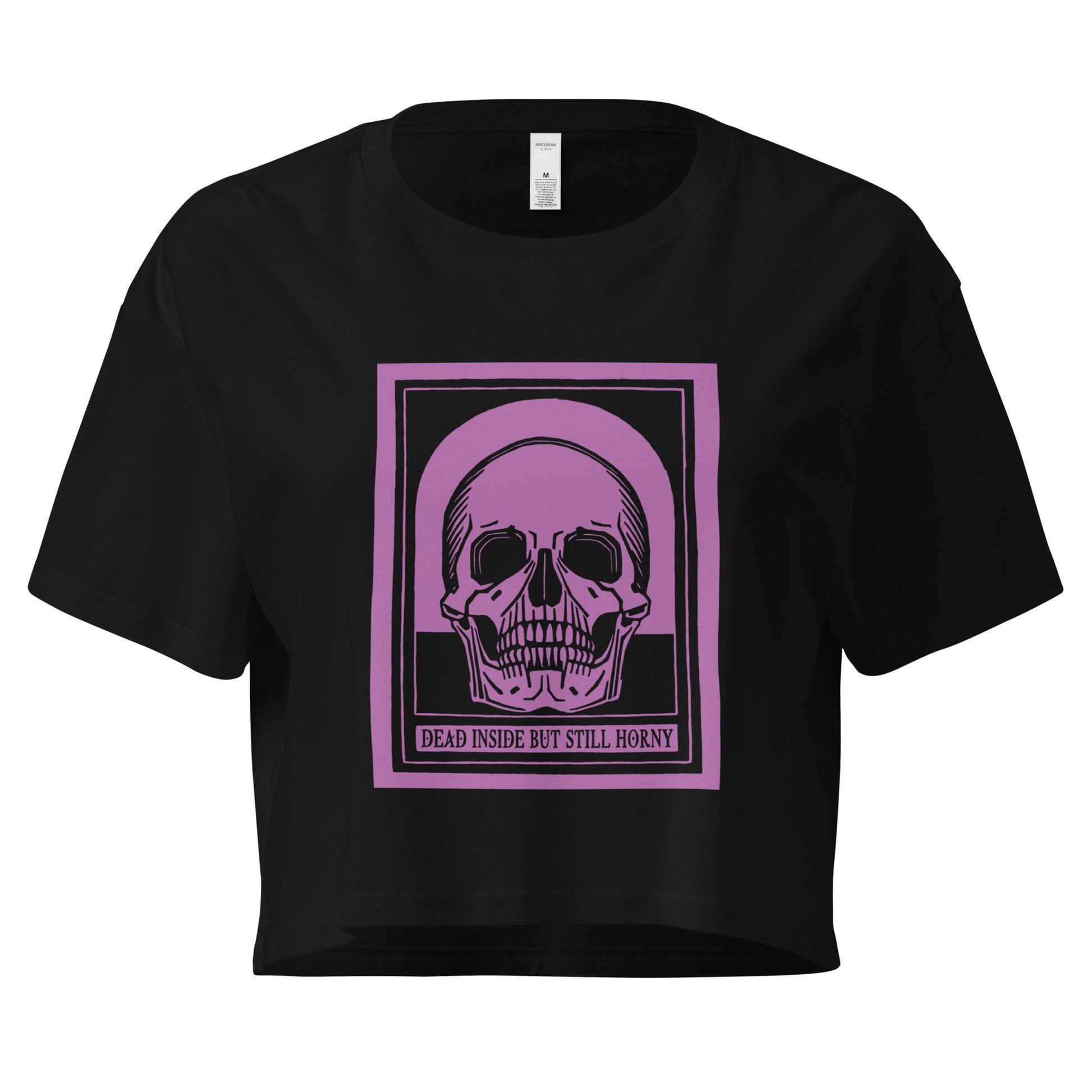 Stay cozy in your curated existential dread with this Dead Inside crop top featuring a vintage skull design and a moody sense of humor. Made from super-soft 100% combed cotton, it’s perfect for jaded folks who still have urges and lovers of all things edgy.