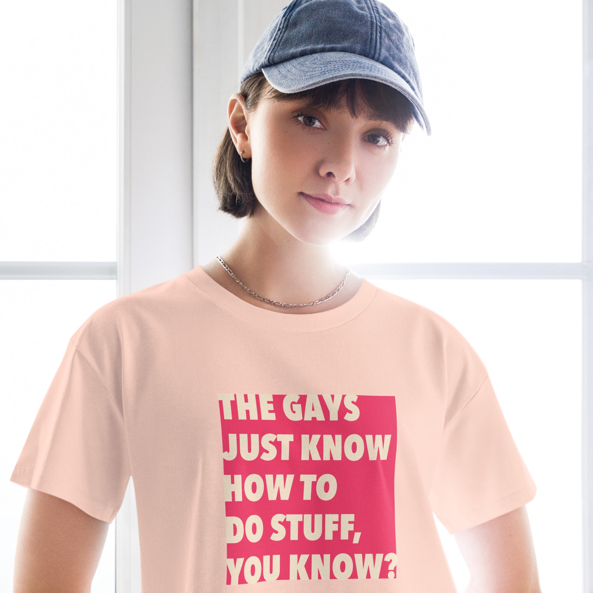 The Gays Just Know Crop Top – Red Bold White Lotus Quote Tee