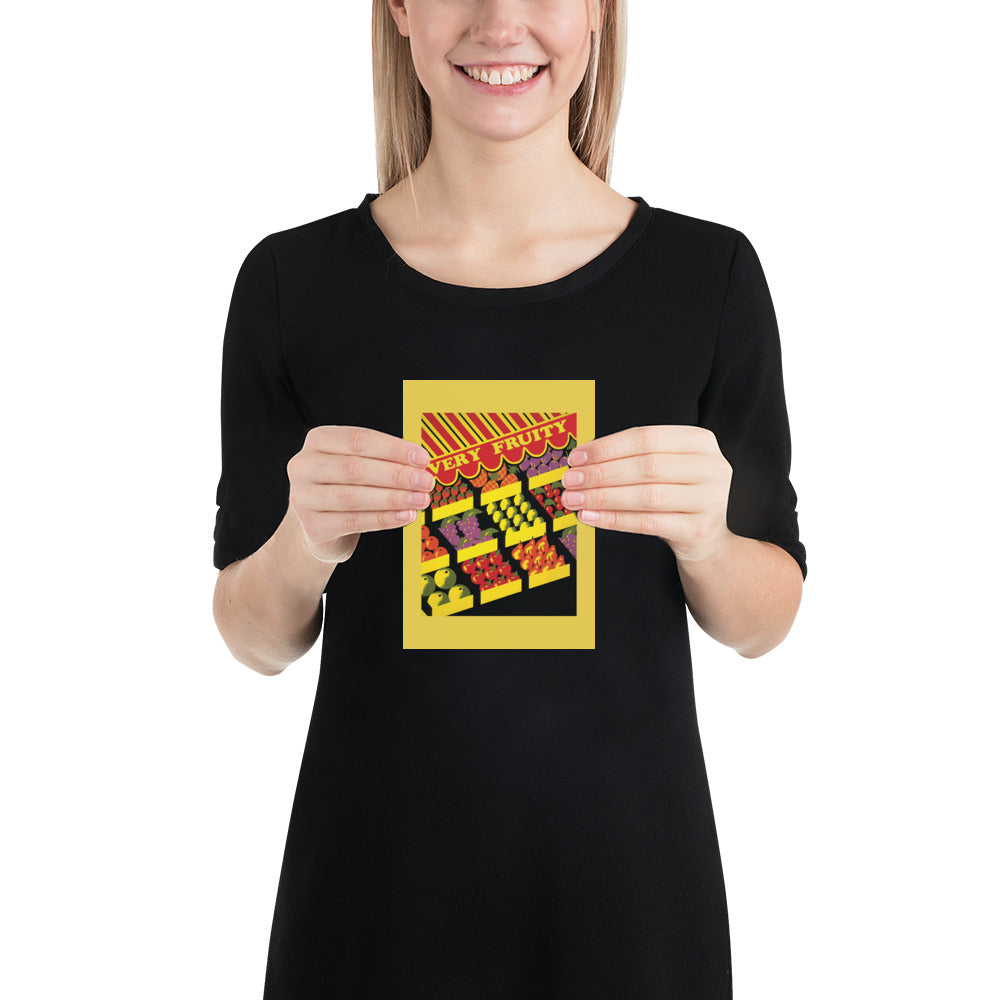Show your fruity flair with this museum-quality printed poster featuring the playful “Very Fruity” design in a vintage fruit stand style. Printed on thick matte paper, this artwork celebrates queer humor, campy vibes and unapologetic self-expression.